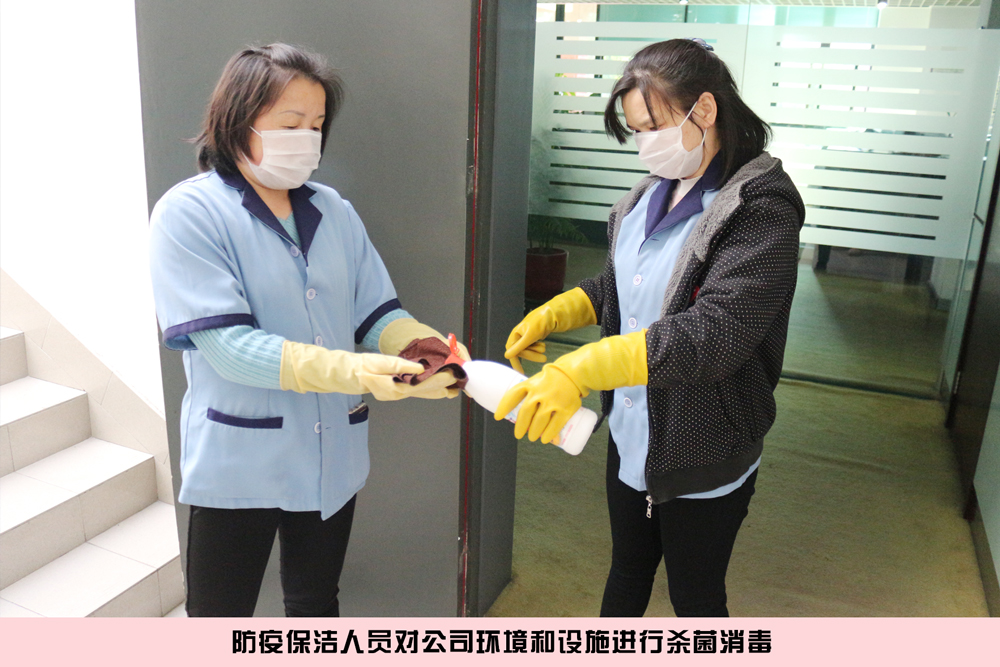 企業(yè)是疫情的第一道關(guān)口,必須要落實(shí)好主體責(zé)任、做好安全防護(hù),公司成立了以總裁張世玨為領(lǐng)導(dǎo)的疫情指導(dǎo)小組,及時(shí)制定防控方案、建立消毒制度,加強(qiáng)防護(hù)宣傳教育,備好防控物資,任何復(fù)工人員進(jìn)廠前都必須完成四道防疫工序,一是嚴(yán)格落實(shí)體溫檢測(cè)、二是佩戴防護(hù)物品、三是工作路線安排、四是在崗員工全部實(shí)行分餐制等要求。同時(shí),防疫保潔人員在園區(qū)必須每天殺菌消毒,并通過企業(yè)微信發(fā)放了疫情的防護(hù)要求。