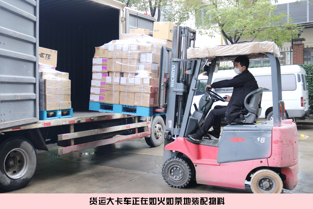 2月12日上午,小編在吉電園區(qū)的倉(cāng)庫(kù)物流部里看到,貨運(yùn)大卡車正在如火如荼地裝配物料,運(yùn)輸車的機(jī)械臂上下擺動(dòng),員工們正在查詢、出庫(kù)、組裝、配送......一條龍井然有序地忙碌著,打響了新年的“第一槍”。