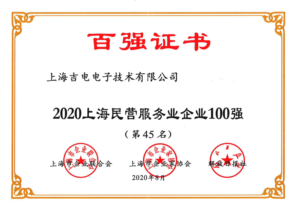 8月18日,由上海市企業(yè)聯(lián)合會、上海市企業(yè)家協(xié)會、上海市經濟團體聯(lián)合會、解放日報社等聯(lián)合主辦的“2020上海百強企業(yè)發(fā)布會”在滬召開。上海吉電電子技術有限公司再次榮登上海民營百強企業(yè)榜,并位居第84位。