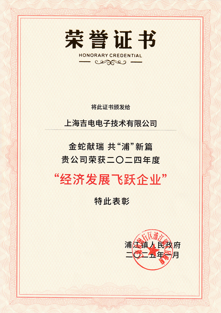 在剛剛過去的2024年,我司憑借2024年度的杰出表現(xiàn),榮獲浦江鎮(zhèn)人民政府頒發(fā)的“經(jīng)濟(jì)發(fā)展飛躍企業(yè)”獎項(xiàng)。此榮譽(yù)見證了我們在過去一年中,面對挑戰(zhàn),堅(jiān)持創(chuàng)新,實(shí)現(xiàn)經(jīng)濟(jì)快速發(fā)展的成果。